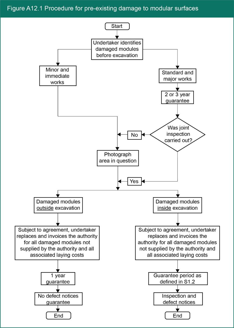 - Prior joint inspections will usually be impractical for minor and immediate works. However, such works are usually small individual openings and a proportion of such works will be inspected by the authority within the sample inspection regime. On completion of all minor and immediate works, the undertaker must be free, and at its discretion subject to S2.8 and A12.3.3, to recover all reasonable costs from the authority according to the procedure illustrated in Figure A12.1.