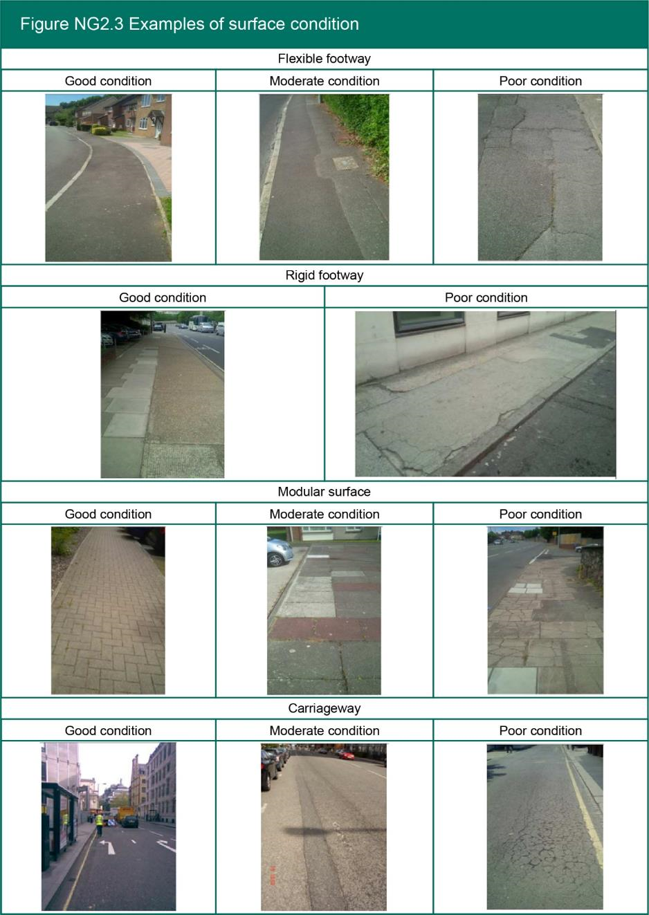 Figure NG2.3 provides guidance on how to assess the surface condition and establish if it is visibly distressed.